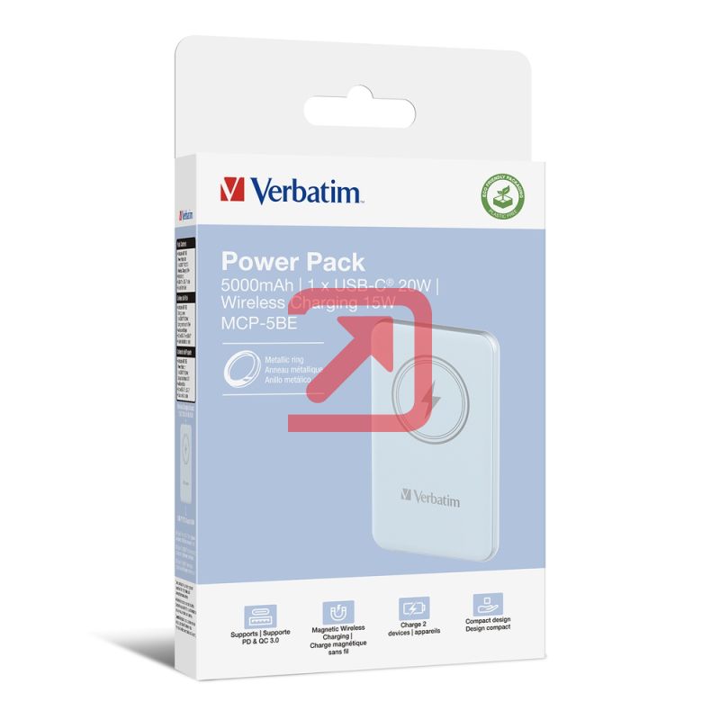 Външна батерия Verbatim MCP-5BE Power Pack 5000 mAh with UBS-C PD 20W / Magnetic Wireless Charging 15W Blue
