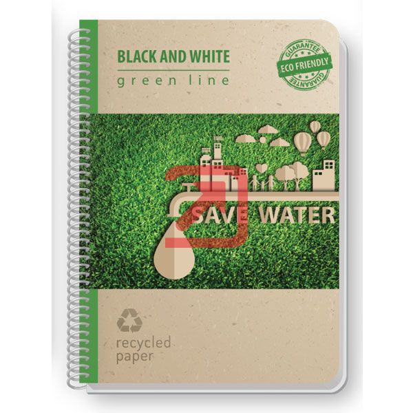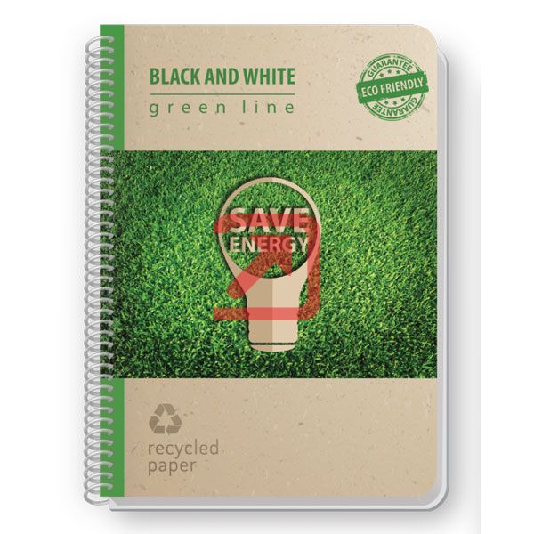 Тетрадка Black&White Eco Green Line Mix Картонени корици, спирала, рециклирана хартия, А4 80 л. с редове