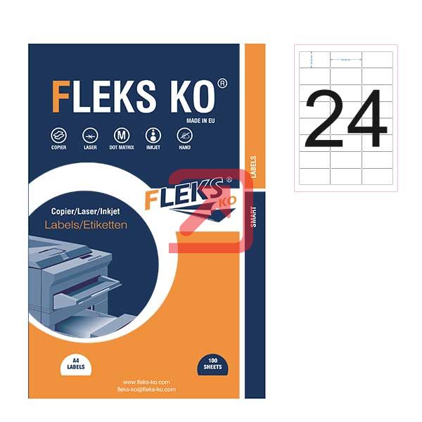 Етикети Fleks Ko Бели, обли ъгли, 64x34 mm A4, 100 л. 24 етик./лист