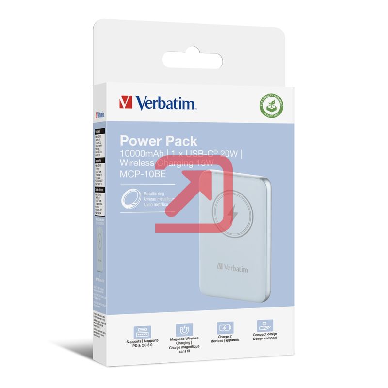 Външна батерия Verbatim MCP-10BE Power Pack 10000 mAh with UBS-C PD 20W / Magnetic Wireless Charging 15W Blue