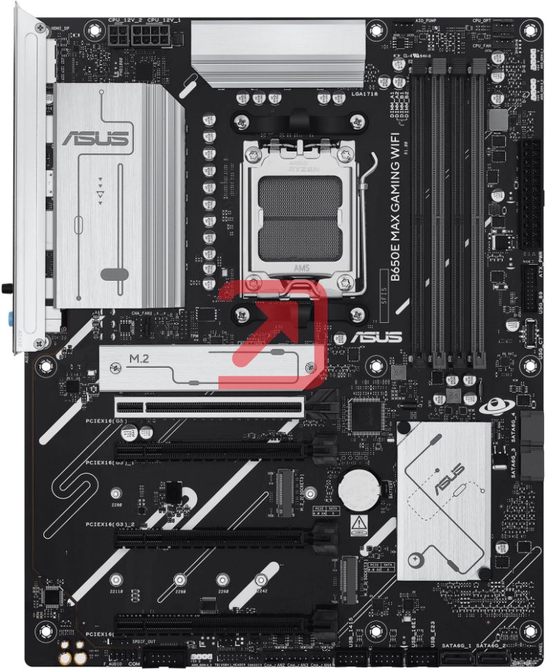 Слотове:PCIe 5.0 x16 slot (supports x16 mode) (AMD Ryzen 9000 & 7000 Series Desktop Processors), PCIe 4.0 x16 slot (supports x8/x4 mode) (AMD Ryzen 8000 Series Desktop Processors)