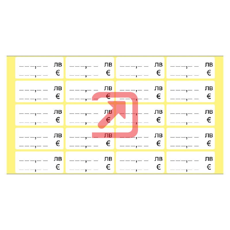Етикети за цени лв. / EUR 56х25 mm 50л.х20ет./бандерол Бели