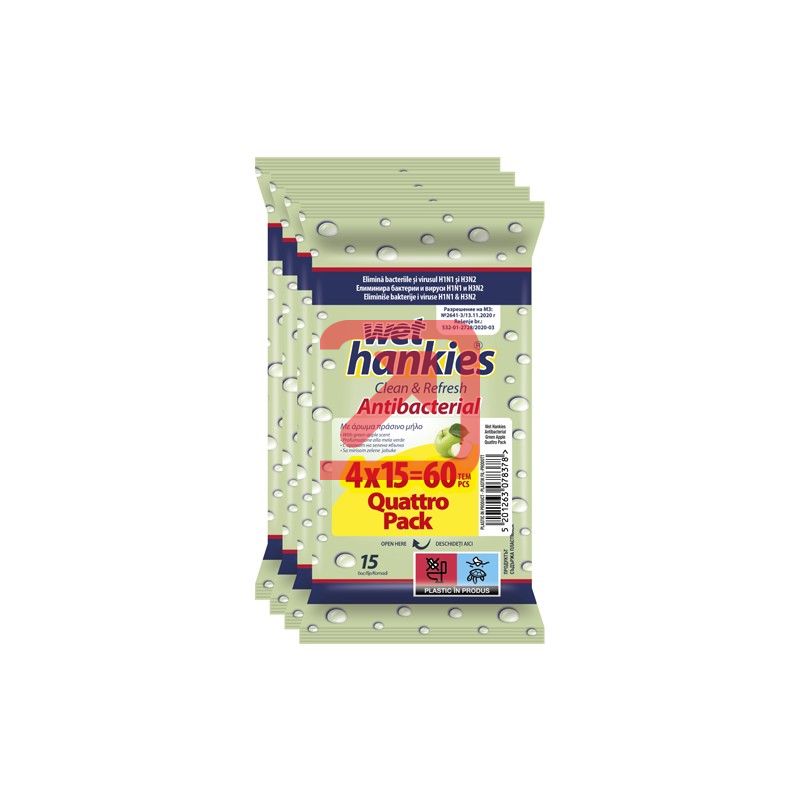 Мокри кърпи Wet Hankies Почистващи и ароматизиращи, 4x15 бр. в плик