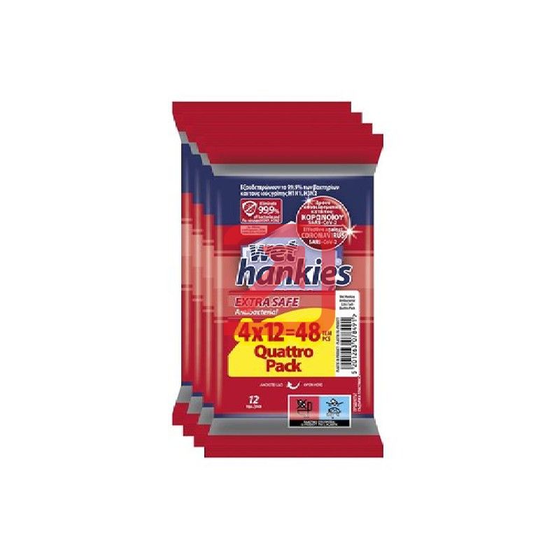 Мокри кърпи Wet Hankies Почистващи и ароматизиращи, 4x12 бр. в плик