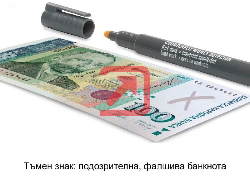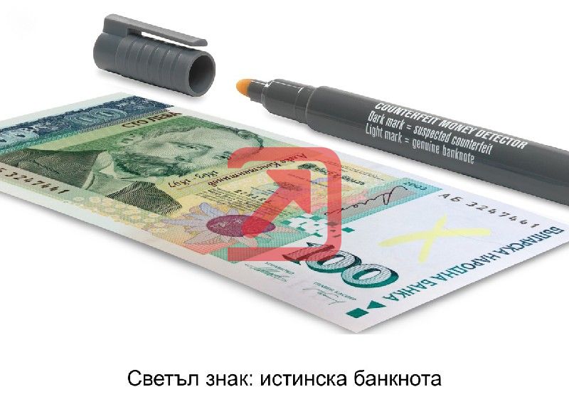 Маркерът е перфектен начин за проверка на всички валути бързо и лесно, на всяко място. Когато поставеният знак е тъмен, банкнотата е фалшива. Ако знакът избледнее и накрая изчезне-банкнотата е истинска. Safescan 30 може да се използва за тестване на всички видове банкноти и валути.